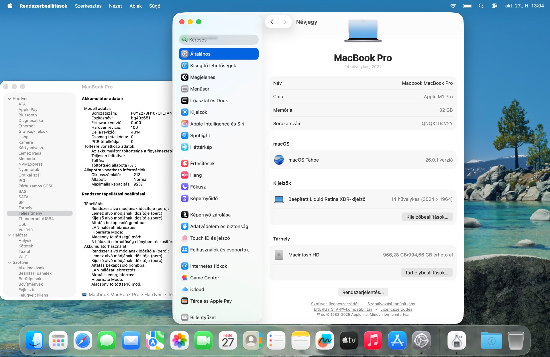 Akkumulátor kapacitása: 92% / 213 ciklus